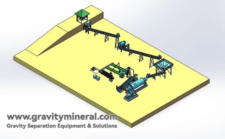 • Sweeping: Centrifugal concentrators recover fine-grained gold efficiently through centrifugal force field; Plate chute is used as a powerless sweeping equipment, which is low-cost and easy to operate.