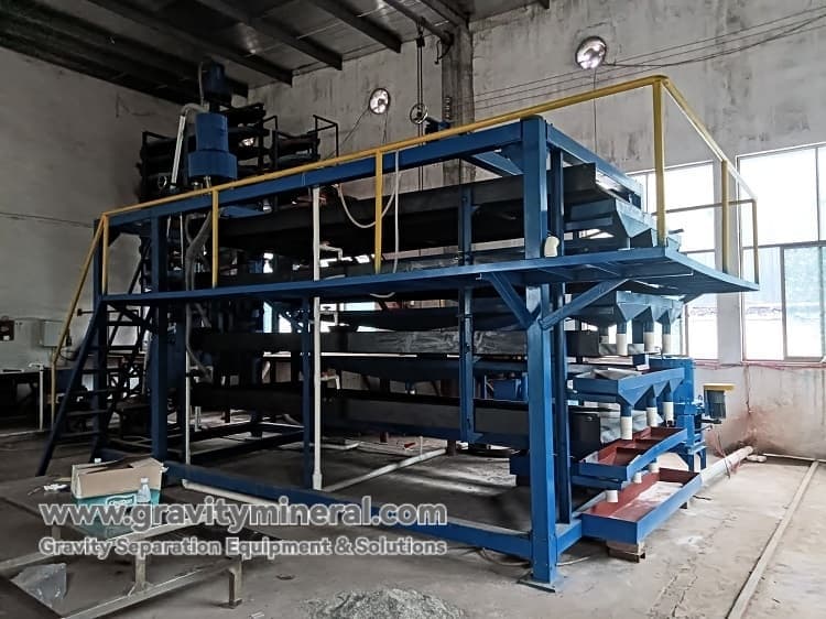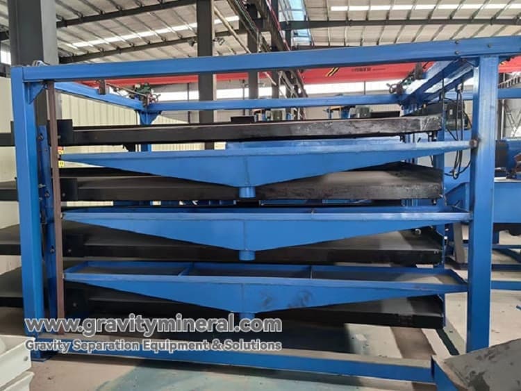 Multi-layer shaking table is a kind of innovative gravity separation equipment, which adopts multi-layer structure design to significantly improve the processing capacity per unit area. This equipment is suitable for sorting tungsten, tin, tantalum, niobium, iron, manganese, chromium, titanium, bismuth, lead, gold and other rare metals and precious metal ores, and also can be used for coal mine sorting. Its effective recovery size ranges from 2-0.022 millimeters, which can meet the needs of roughing, concentrating and sweeping and other beneficiation operations.