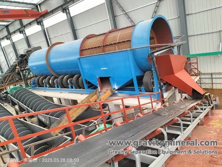 Rotary scrubber is a professional equipment for processing minerals with high clay content. Through the unique rotary washing principle, it can efficiently decompose clay, soft oxides and other bonded materials and fully release useful minerals. This equipment is especially suitable for the pretreatment of alluvial gold ore, tin ore, iron ore, bauxite and other viscous weathered sedimentary deposits, with a processing capacity of up to 50-300 tons/hour and a maximum feed size of 230mm, which makes it an ideal choice for the pre-washing operation of gravity beneficiation plants.